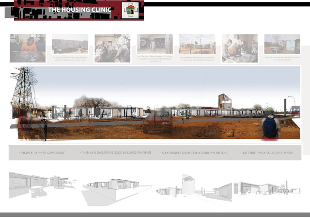 My project focuses on introducing urban spatial and formal hierarchy into the township through the introduction of an Urban Health Precinct with emphasis on the detailed design of a Mother & Child Centre, in the township of KwaZakhele, Port Elizabeth. The choice of building type stems from the addressing of current social concerns, namely the lack of adequate healthcare facilities in our township areas as well as alarmingly low infant care standards. The treatise focuses on the investigation of the constituents of nurturing & healing space, as well as the introduction of identity and a sense of place within a historically segregationalist, architectural identity-devoid context. The components of the building include a pre- and post- natal facility, delivery and recovery as well as an educational component focused on, but not limited to, the empowerment of women form the community, drawing on their experience as mothers and caregivers to educate younger and first time mothers.